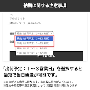 「出荷予定:1~3営業日」の商品のみ先に発送を希望するお客様は注文時の『備考欄』にご記入ください。