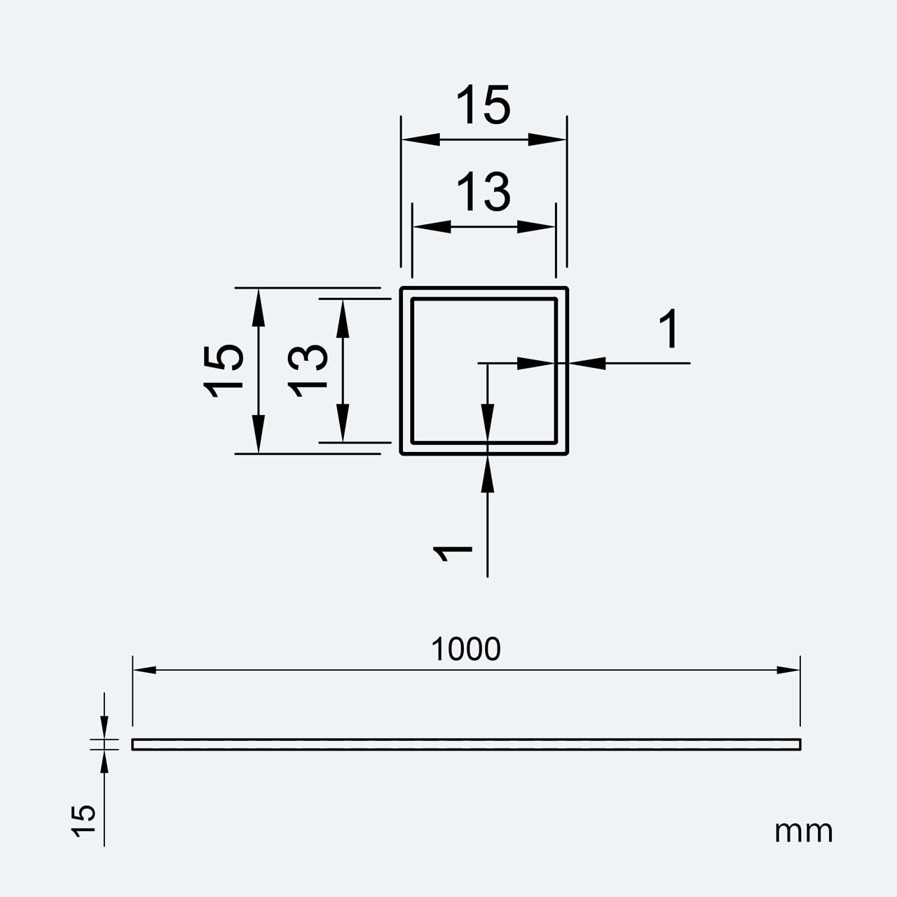 カーボン角パイプ 辺15 x 15mm 厚み1.0mm 長さ1,000mm