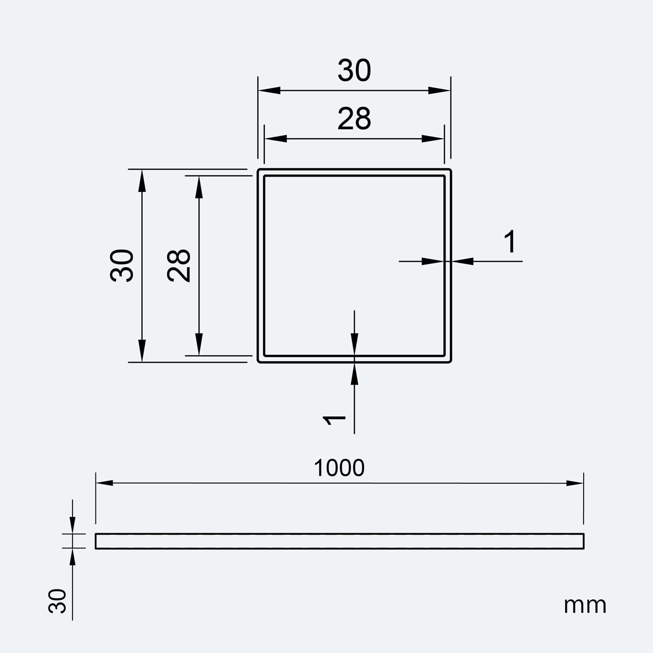 カーボン角パイプ 辺30 x 30mm 厚み1.0mm 長さ1,000mm
