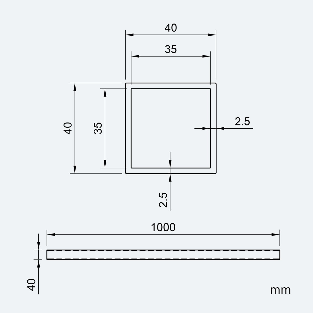 カーボン角パイプ 辺40 x 40mm 厚み2.5mm 長さ1,000mm