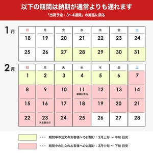 製作の状況で発送が前後する場合がございますので予めご了承ください。